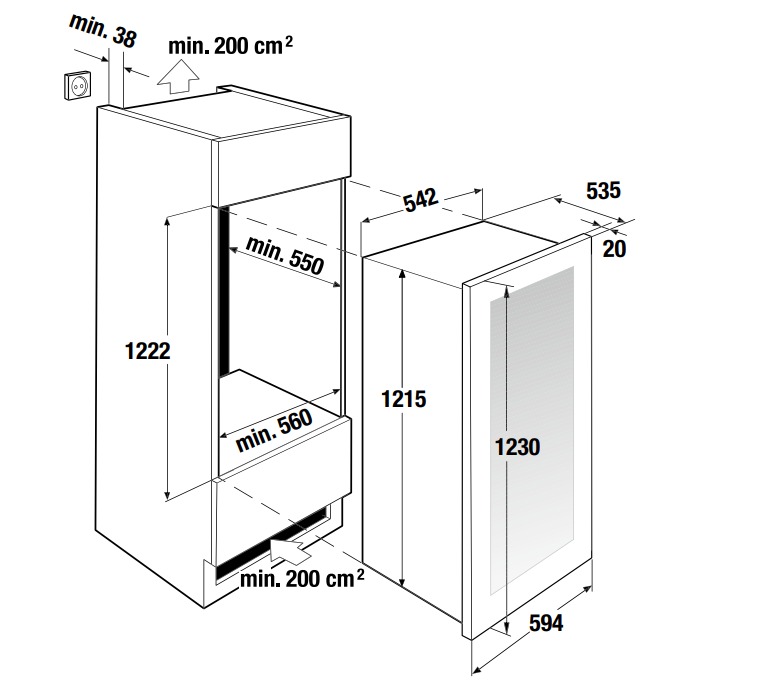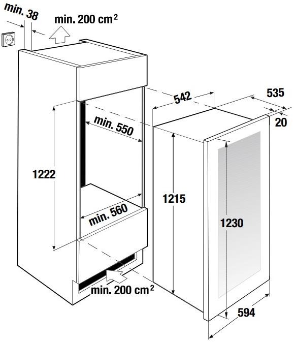 Стеклянная дверь — дополнительный изящный штрих к общему дизайну модели. Специальное покрытие защищает вино от влияния ультрафиолетовых лучей, которые проникают, если шкаф находится в солнечной комнате. Цвет корпуса — черный. Дверь можно перевесить на другую сторону, поэтому вариантов размещения его в доме становится больше.