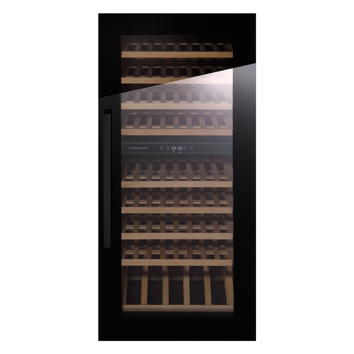 Винный холодильник Kuppersbusch FWK 4800.0 S5 Black Velvet имеет две температурные зоны, в которых одновременно можно хранить разные сорта алкоголя и выставлять разные сочетания настроек. Он встраивается в нишу, что удобно, если у вас ограничен метраж помещения. Количество бутылок, которое можно разместить с учетом полной комплектации и из расчета объема бутылки 0,75 л, — 79 шт.